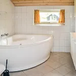 De gesitueerde in Oksbøl Holiday Home Hindbaervangen Oksbol V heeft een badkamer, voorzien van een bubbelbad en een douche. Er zijn een droger voor het comfort van de gasten.